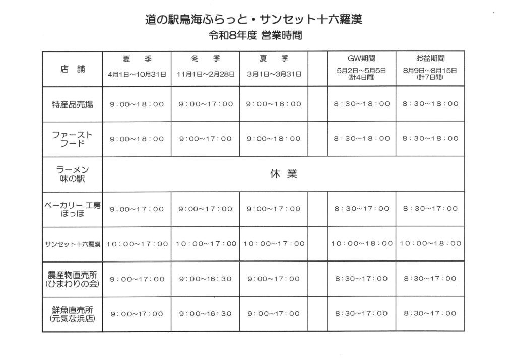 日頃より、道の駅鳥海ふらっとをご愛顧いただきまして、